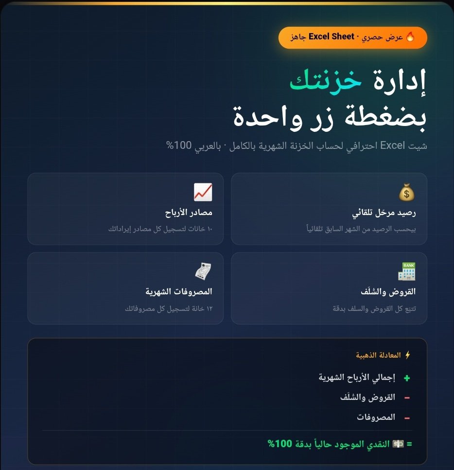 شيت Excel لإدارة الخزنة الشهرية بالكامل